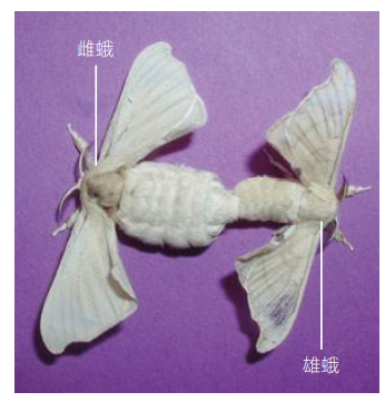 蚕蛾出茧后,雌蛾会自腹部的前端放出香气,来引诱雄蛾,紧接着是雌雄交尾。交尾后雄蛾因能量消耗大,会迅速的死亡,而雌蛾会在 3-4 小时后产下卵,几天后也会死亡。那么我们怎么分辨雄蛾和雌蛾呢?
