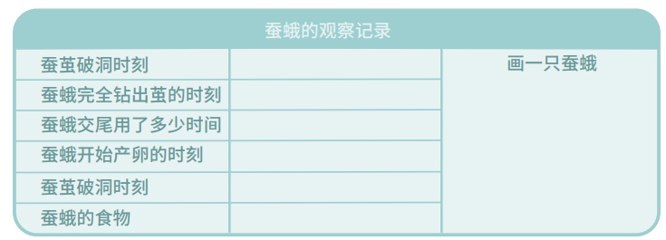 1. 蚕蛾是怎么从茧里面出来的呢?又是怎么交尾蚕卵的呢?让我们打开智慧生态教育 APP,通过追溯功能观察,并完成记录表。