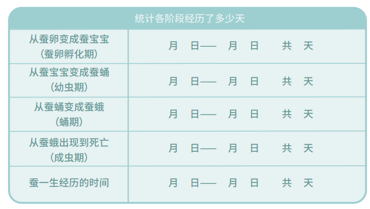 我们可以将蚕的一生分为哪几个主要阶段?每个阶段大约经历了多少时间?算一算蚕的一生大约是多长时间?
