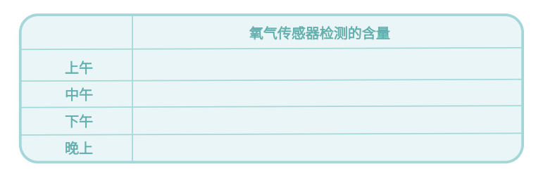 同学们,在今天的知识学习中我们知道了氧气传感器的作用,也明白了氧气 传感器是怎样工作的,让我们使用氧气传感器测量下不同时间的氧气含量吧。