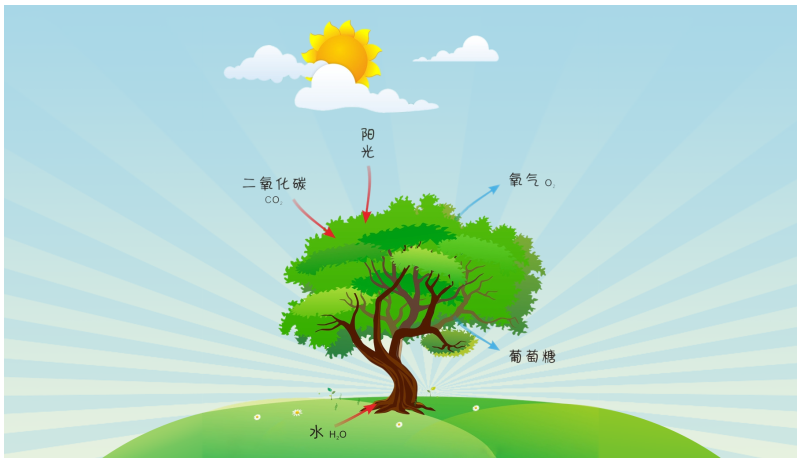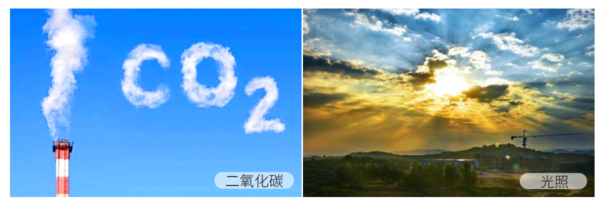 看上一页的两张图,显示的是同一地点,同一时间段内二氧化碳浓度和光照强度指数的数值变化。是不是发现数值呈现反向变化呢?当阳光强烈时二氧化碳浓度数值下降。而光照减弱时,二氧化碳浓度就会增加。而究竟为什么会这样呢?我们需要先了解一下植物的“光合作用”。