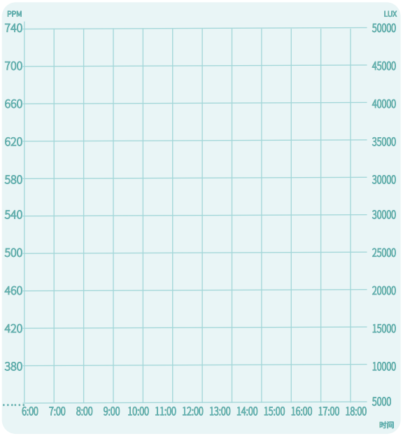 (2)将记录好的数据在同一坐标系中,以折线统计图的形式画出来,这样能够更加直观的看出一天中二氧化碳和光照的变化。
