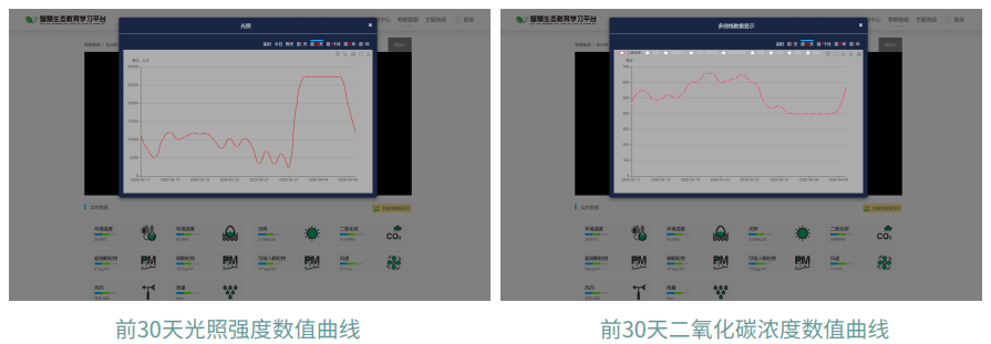 为了能让同学们更好的研究二氧化碳与光照的关系,这里我们就要用到能够测量空气中二氧化碳数据 , 捕获环境光照强度的设备⸺智慧生态气象微观察记录仪。智慧生态气象微观察记录仪上安装有环境四合一传感器,而环境四合一传感器中就包括二氧化碳传感器和光照传感器,他们能够告诉我们实时的光照强度、二氧化碳浓度的数值。