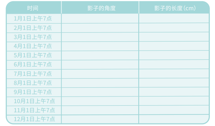 同学们利用气象微观察记录仪的图片追溯功能,用量角器测量影子的方向,用直尺测量影子的长度,并记录在下表中