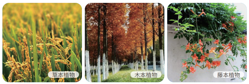 我们还经常看见三个常用名词 :“草本植物”、“木本植物”、“藤本植物”。