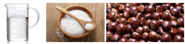 我们可以这样做。先取 1 千克的水,放入 250 克的食盐,充分搅拌使食盐溶解。然后放进栗子,假使全沉下去,说明盐水太淡,应继续加进食盐;如果大部分栗子飘在水面,说明盐水太浓,应加水稀释,直到大部分栗子斜卧在碗底为止。