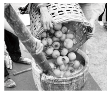 将一些小果、残果(也可以用好果,只是比较浪费)捣烂后放在容器里,加水搅拌,倒入要催熟的柿子,加水至完全浸没柿子,并将柿子轻轻搅动浸泡 2-3天就能食用。
