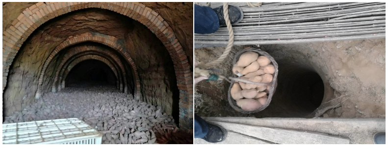 在南方往往会修建地窖用来贮藏红薯,在一个凉爽、干燥的地方挖造的地窖,一般是全地下式,直接从地面洞口进出。洞口揭开,放几天再进去打扫,下去避免缺氧。清扫干净以后,喷洒多菌灵,之后再把红薯放进去,平铺放置,不要重叠。