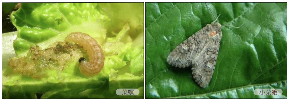 危害:小菜蛾幼虫俗称“两头尖”,是为害青菜的又一主要害虫。第一龄幼虫钻入组织间潜食叶肉,第二龄开始啃食叶背的叶肉,第三龄后则将叶片吃成空洞或网状。小菜蛾一年发生 9-10 代,成虫、蛹、幼虫都可越冬。天气转暖时,成虫开始活动,卵多产在叶背近叶脉处,一只雌蛾平均产卵量可达 300 粒。一般在 4-10 月份都有小菜蛾为害,其中以 4-5 月和 8-9 月发生较多,为害严重。
