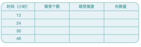 48 小时观察结束以后,查看其他组记录的种子萌芽情况和光照数据,小组成员合作讨论分析,得出光照对黄豆种子萌芽是否会产生影响的结论,用文字描述。