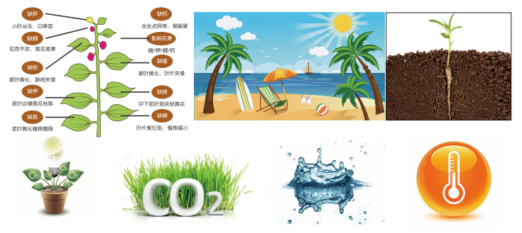 光照:光照是植物进行光合作用,并合成叶绿素和营养物质的重要条件。因此,光照是构成植物生长的必要条件。一般来说,植物分为喜阳植物、喜阴植物中性植物三种。
