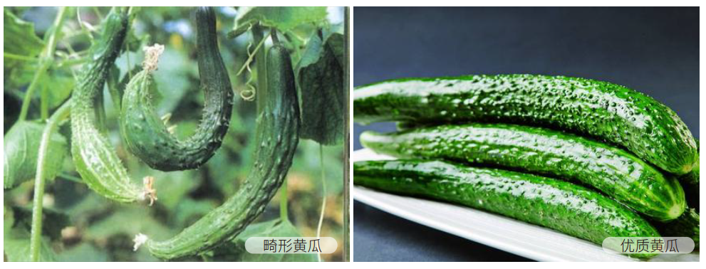 (1)肥力不足,养分供给不足或不合理是出现弯曲或畸形瓜的重要原因之一,黄瓜结 瓜多,需肥量大,大量元素和中微元素短缺都会引起长势不良,直接影响产量更别提瓜的 品质。