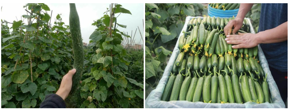 第四点,农民伯伯在采收黄瓜时是有采收频率的,在结瓜初期一般 2~3 天采收一次,在结瓜盛期每天都可以采收,在结瓜末期开始拉秧子的时候,黄瓜市场价格可能也上